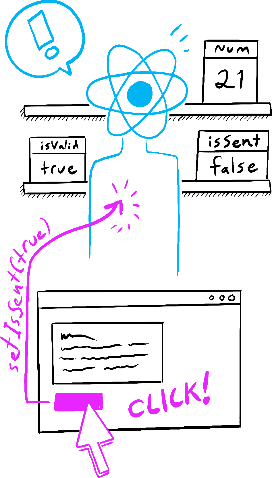 Trong ví dụ dưới đây, khi bạn nhấn “Gửi”, setIsSent(true)
