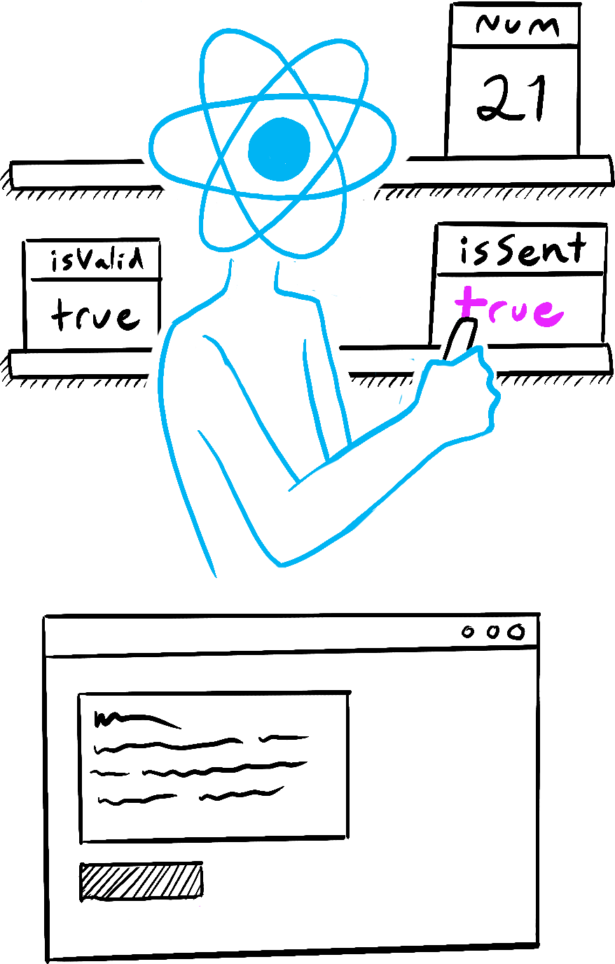 import { useState } from 'react'; export default function Form() { const [isSent, setIsSent] = useState(false); const [message, setMessage] = useState('Hi!'); if (isSent) { return <h1>Tin nhắn của bạn đã được gửi đi!</h1> } return ( <form onSubmit={(e) => { e.preventDefault(); setIsSent(true); sendMessage(message); }}> <textarea placeholder="Message" value={message} onChange={e => setMessage(e.target.value)} /> <button type="submit">Gửi</button> </form> ); } function sendMessage(message) { // ... }